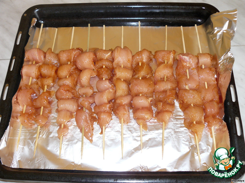 Распечатать рецептКуриный шашлык, запеченный в духовке