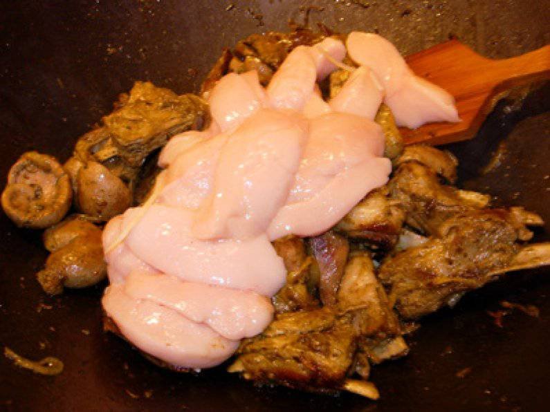 Перловая каша с куриными сердечками