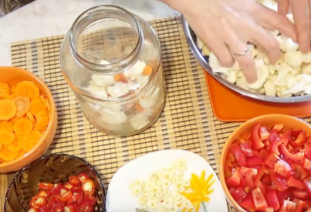 Осенью на грядках массово созревают овощи, а это значит, что наступает пора позаботиться об их заготовке на зиму. К сожалению, цветная капуста не может долго сохранять свою свежесть, поэтому ее лучше сразу мариновать. В банки можно закладывать только капусту в ароматном рассоле или комбинировать овощ с морковью, болгарским перцем, чесноком и прочими свежими овощами.