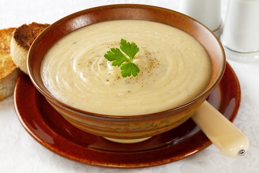 Наш изысканный суп-пюре из цветной капусты не содержит молочных продуктов, прост, быстр и полезен!