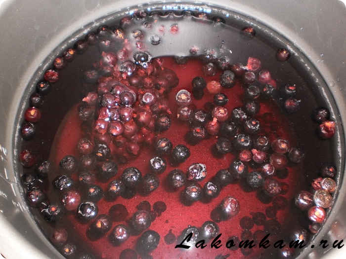 - После закипания опускают черноплодную рябину и, постоянно помешивая, дожидаются закипания.