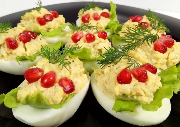 Яйца с начинкой — одна из самых любимых закусок в Америке. Независимо от того, подаются ли они как часть пасхального стола, как закуска для вечеринки или общего обеда, или как закуска в день игры, они обязательно быстро исчезнут. Дети и взрослые любят эти портативные, ручные укусы, наполненные легкой смесью пюре, сваренного вкрутую яичного желтка, майонеза и простых приправ. Начинки легко дополнить всевозможными специями и другими добавками, что делает фаршированные яйца особенно универсальной закуской.