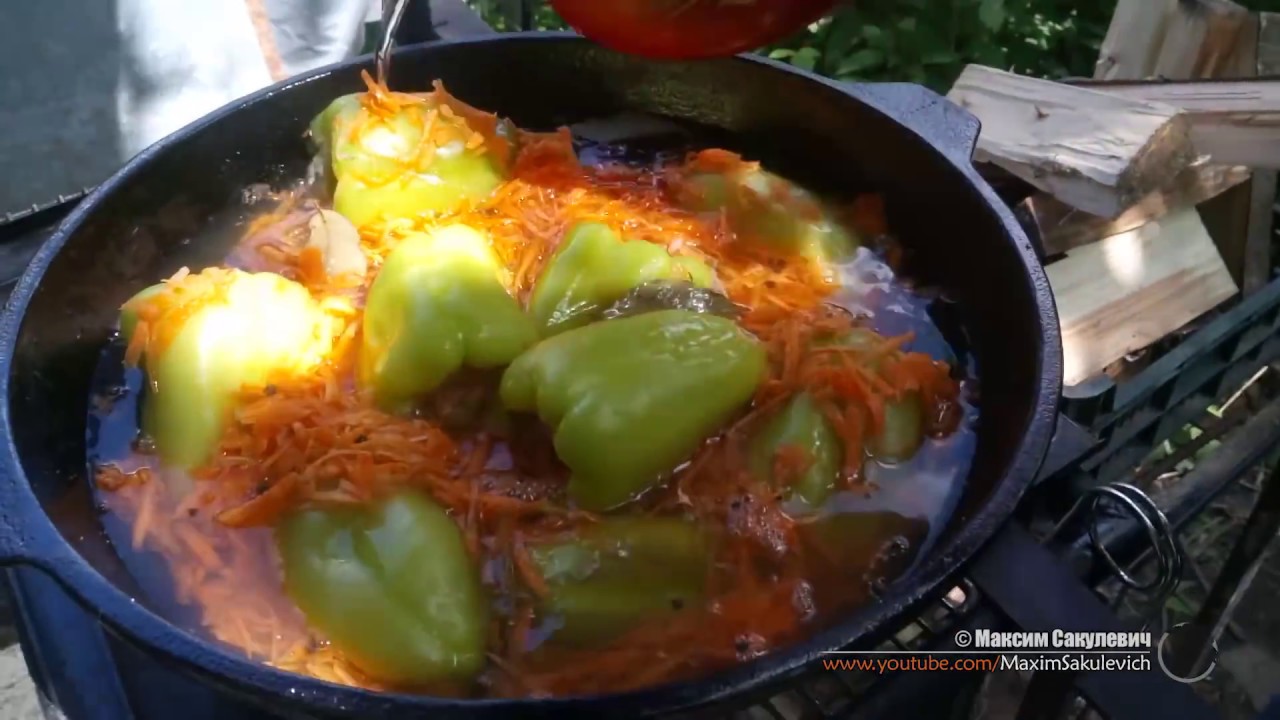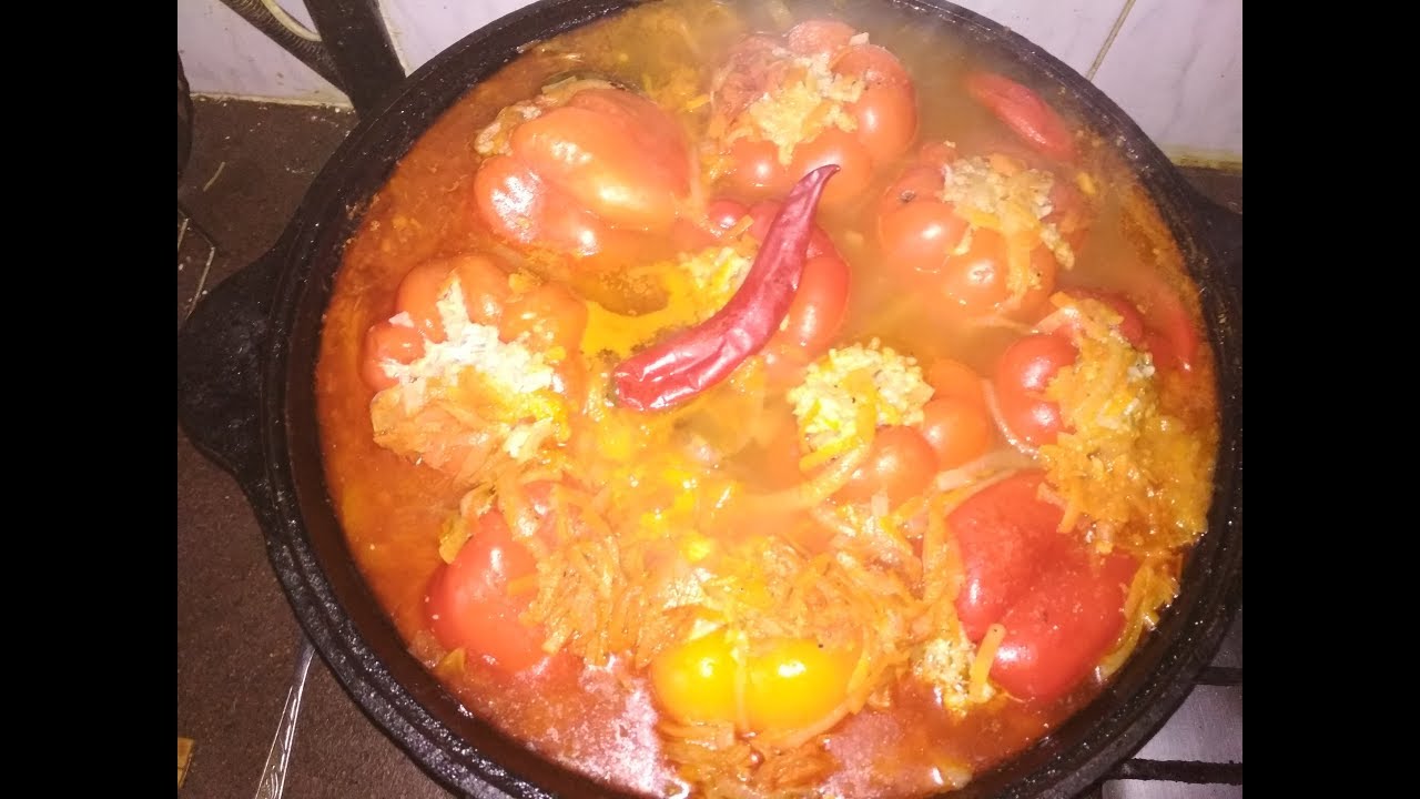 Казан с фаршированным перцем ставим в духовку на 60 минут.Готовим при температуре 240 ° С. Это блюдо можно приготовить в поле или на даче, тогда просто вешаем казан «на огонь» или ставим на мангал. Время приготовления остается таким же, как в духовке.