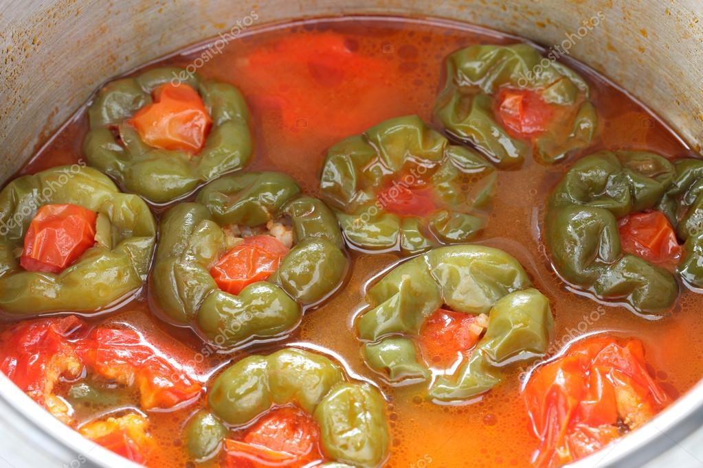 Сначала нагреваем на сильном огне, а когда закипит огонь уменьшаем до минимума и тушим до готовности 40-50-60 минут. в зависимости от размера фаршированного перца.