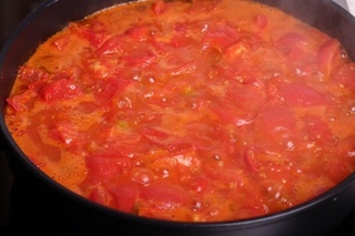 Если вы используете томатную пасту, то разведите 1-2 столовые ложки в небольшом количестве воды и потом добавьте ее в кастрюлю. А можно просто положить ее и потом залить водой.
