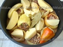 Используем ингредиенты для фаршированного перца в казане согласно списку.