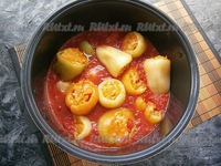 Если вы используете кетчуп или помидорную заправку для супа, которую приготовили летом на зиму, то смело добавляйте ее к перцу. Все кладем по вкусу. я положила 3 столовые ложки томатной заправки. Учтите что помидоры не только вкусные , но и кислые, поэтому не переусердствуйте.