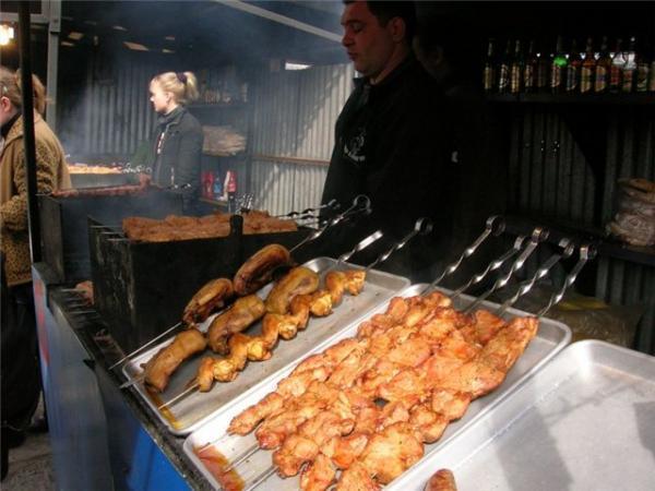 Хотя в России, как правило, все же мясо на углях именуют привычным названием — «Шашлык». С этой вкусной едой повара нередко стремились войти в Книгу Рекордов Гиннеса, что получилось у черкесского мастера. Он приготовил бараний шашлык длиной 120 метров. Помогали ему в столь нелегком деле 80 компетентных помощников. Еще один рекорд был поставлен в Киеве, где на мангале приготовили 150-метровый шашлык.