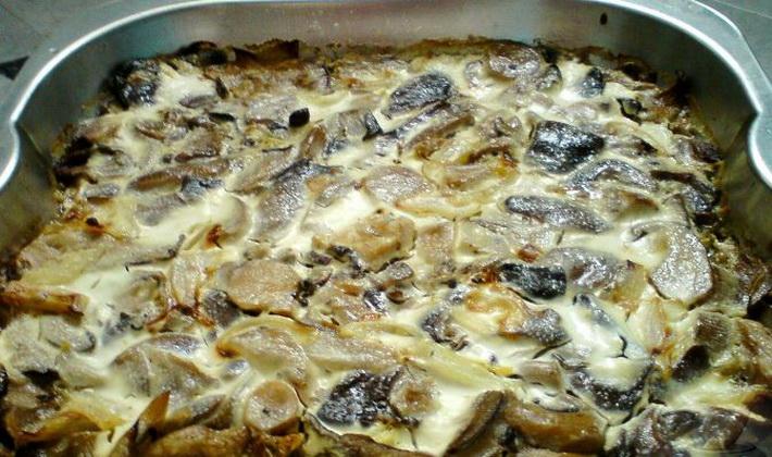 Картофель, запеченный с грибами в сметанном соусе (в горшочках)