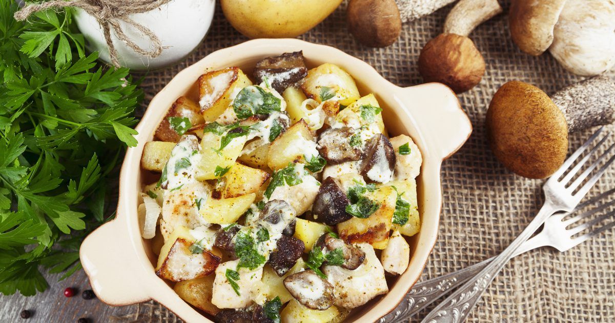 Белые грибы жареные с картошкой в сметане