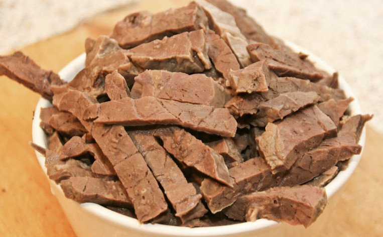 Светлая корова структурно более жесткая, поэтому ее нужно варить дольше. Если вы покупаете в магазине этот субпродукт, то его нужно внимательно осмотреть. Она должна быть свежей, чистой, без сгустков крови.