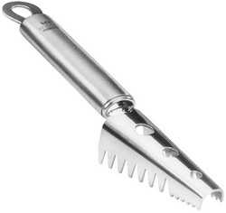 Следует отметить, что сегодня на рынке товаров имеется широкий ассортимент универсальных устройств, специально предназначенных для чистки рыбы. Огромным преимуществом таких приспособлений является то, что в них предусмотрен карман для сбора чешуи. Именно поэтому ими можно чистить окуня не только в полевых, но и в домашних условиях. Однако при покупке таких устройств следует обращать особое внимание на их качество, в том числе и на толщину металла. Ведь если это изделие будет сделано из тонкого материала, то во время чистки рыбы оно может погнуться или вовсе сломаться.