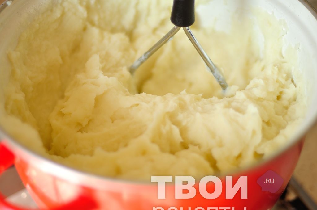 Доводите картофельное пюре горячим молоком до консистенции, которую вы любите. Мне и моим родным нравится не густое пюре, а слегка жидкое, нежное и воздушное.