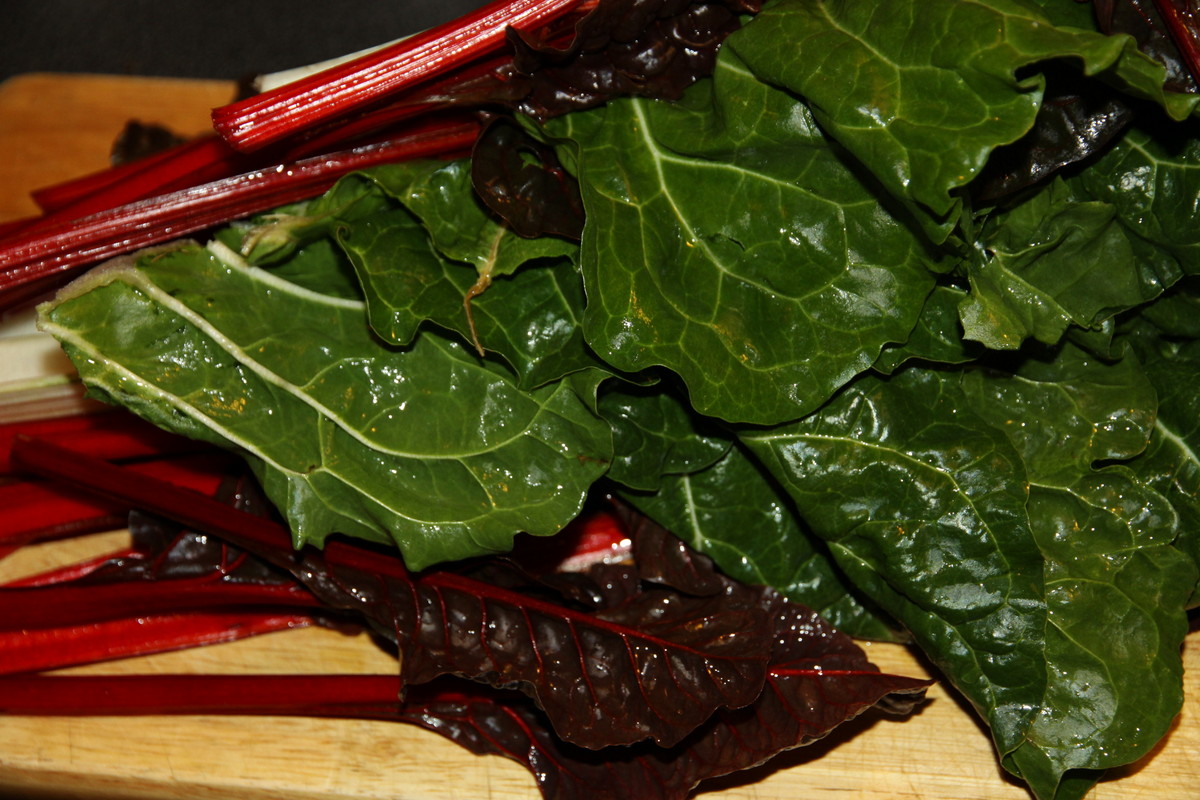 При использовании мангольда я рекомендую листья с белыми или желтыми стеблями. Мангольд с красными стеблями отлично подходит, но придает блюду мутный цвет. Если вы используете шпинат, более крупные и зрелые сорта работают лучше, чем молодой шпинат. Просто отломите стебель от листа, и он готов к работе.