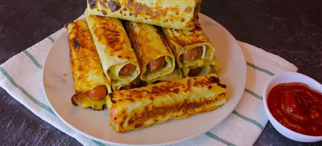 Сосиска в хрустящем лаваше с сыром — простой рецепт на сковороде