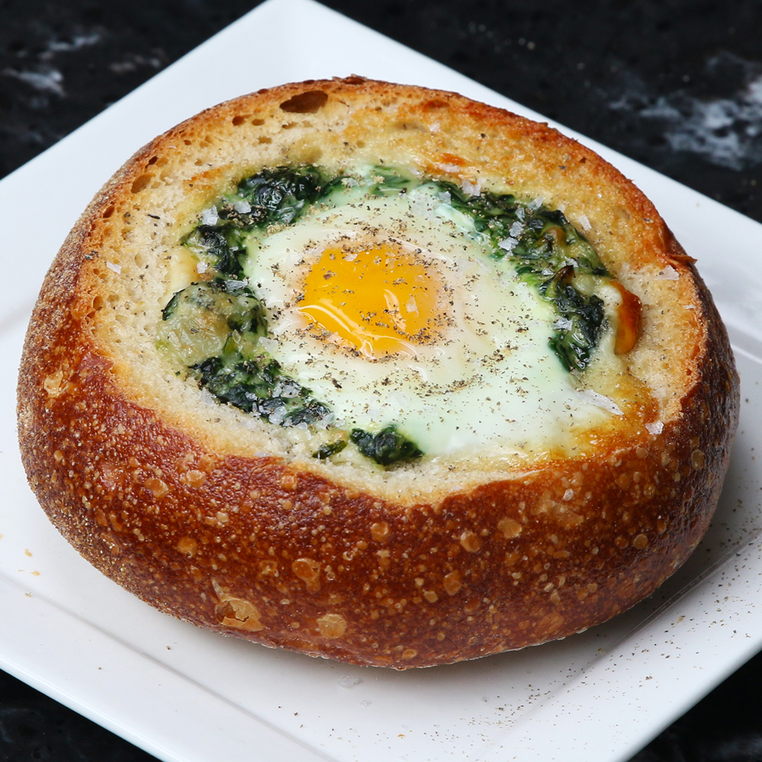 - подаем яичницу в хлебе