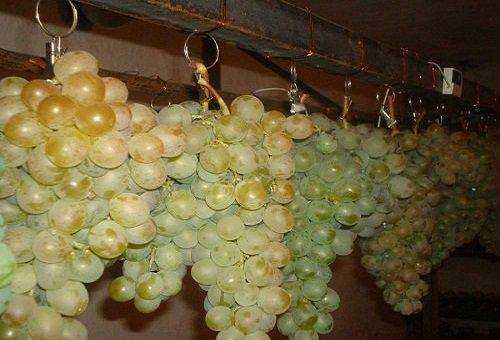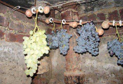 Подвесьте виноград на натянутую веревку или проволоку в подготовленном помещении для длительного хранения. Его гроздья не должны касаться ягодами друг друга.