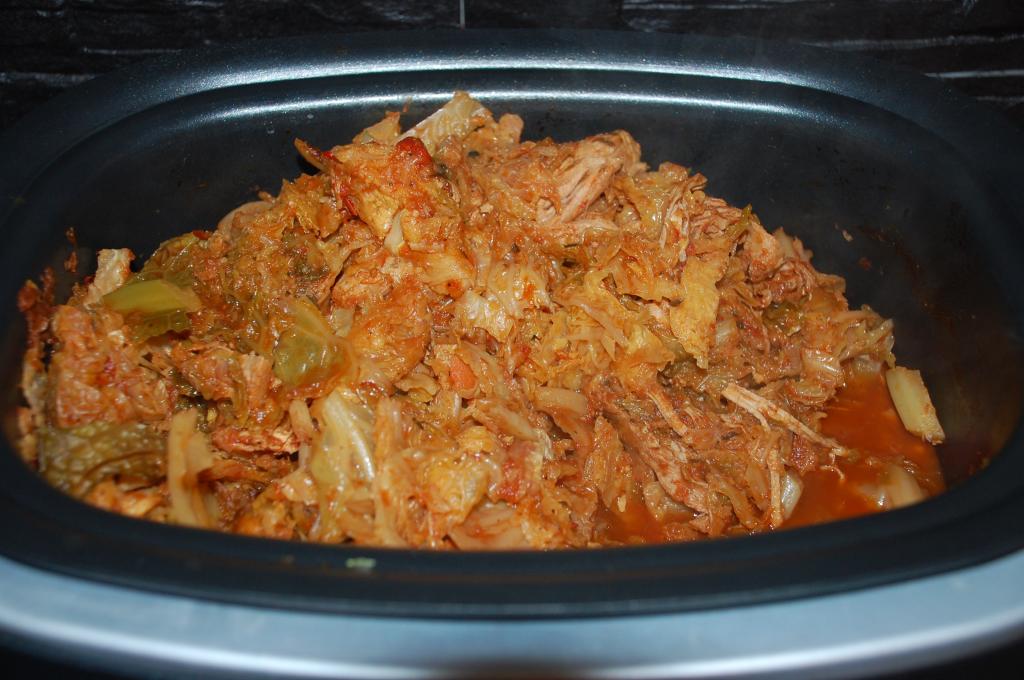 Накрыть крышкой и готовить на высокой температуре в течение 4 часов или на низкой температуре в течение 6-8 часов, пока капуста не станет мягкой. * Если вы используете половину кочана капусты, она готовится за 2 часа на сильном огне и примерно за 4-6 часов на слабом огне.