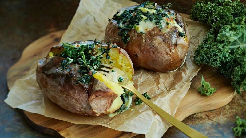 - Можно ли приготовить веганский печеный картофель? Определенно, просто используйте веганское масло или растительное масло для жарки (вместо масла).