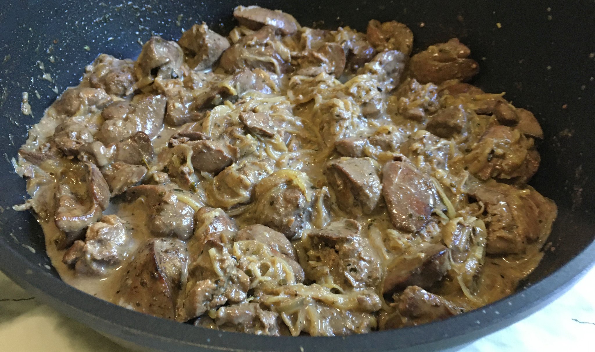 Куриная печень, тушенная в сметанном соусе, — нежнейшее и очень вкусное блюдо!