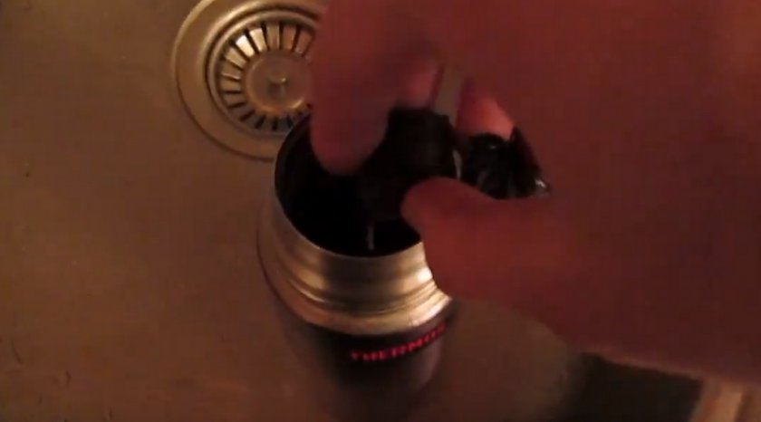 - Заливаем воду в термос примерно на 5 сантиметров до края.