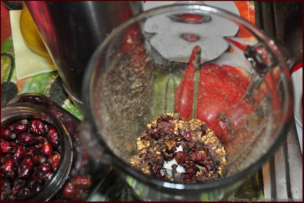 • 1 столовая ложка пюре из свежих плодов шиповника или 1 1/2 чайных ложки измельченных сушеных плодов шиповника, или около 10 целых плодов шиповника перед измельчением или пюре