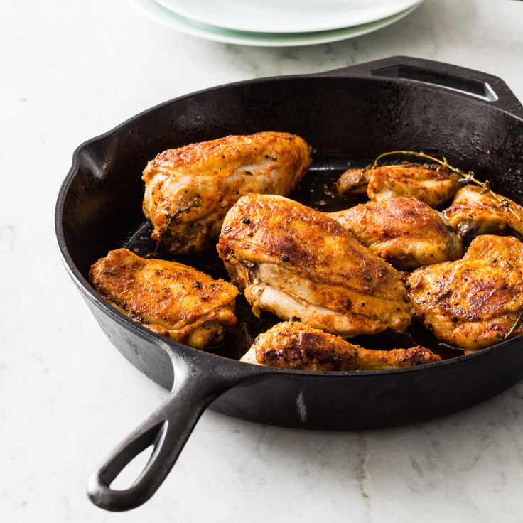 Переверните и готовьте еще 3-5 минут с другой стороны, пока курица не достигнет 155 градусов на термометре с мгновенным считыванием (курица считается приготовленной при 165 градусах F, но будет продолжать готовиться, пока она отдыхает).Переложите приготовленную курицу на тарелку или разделочную доску. Накройте и дайте постоять 10 минут. Наслаждайтесь теплым, сбрызнув лимонным соком и посыпав зеленью.