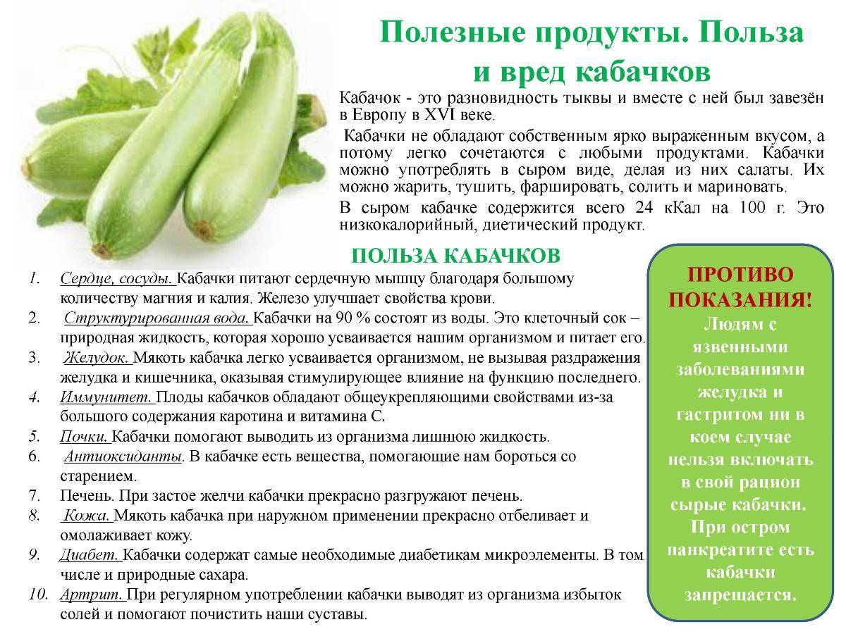 - Полезные и вредные свойства кабачка