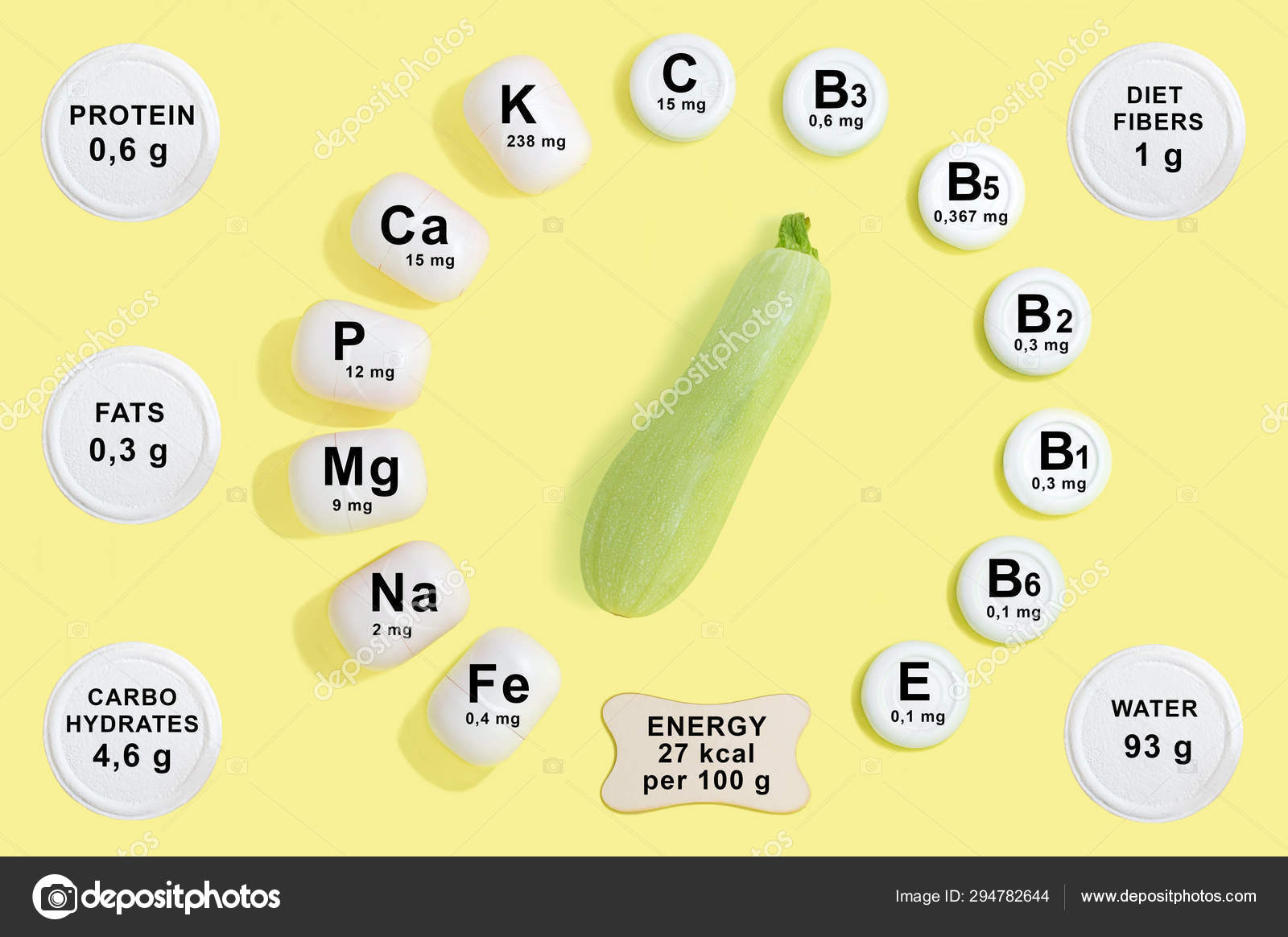 Вот разбивка общей пищевой ценности кабачков.