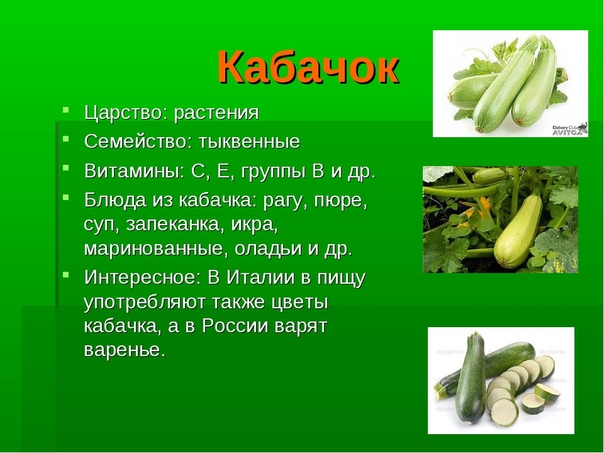 - Описание кабачка