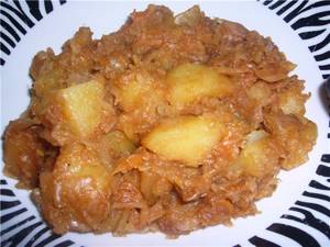 Его готовить и просто и продуктов нужно не много. На пару килограмм капусты вам нужно грамм 400-500 мяса или копчености, лук да морковь. Если нет мяса, вы можете приготовить тушеную капусту с овощами.