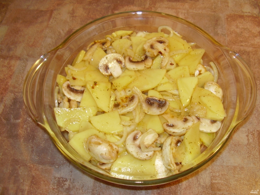 Запеченная картошка с грибами в духовке: рецепт со сметанным соусом