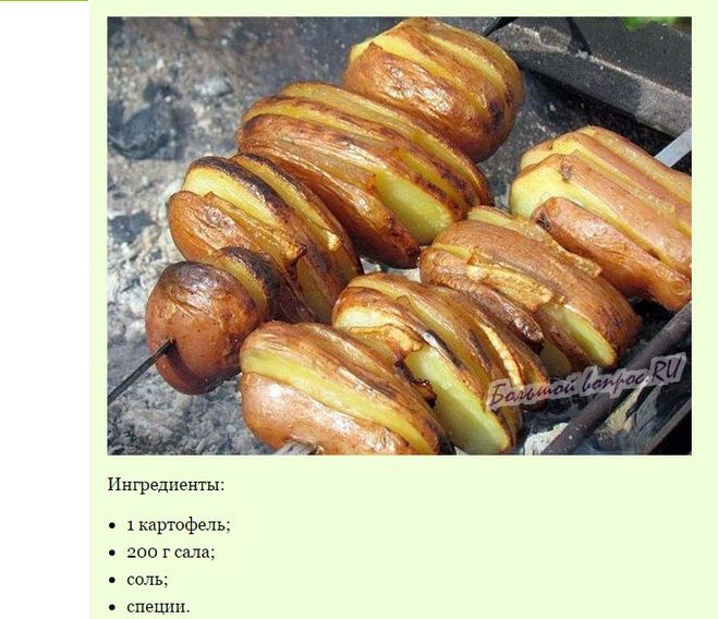 Картошка на шампурах (с салом и без) на мангале: рецепт с фото