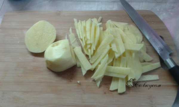 Картофель нарезаем длиной соломкой