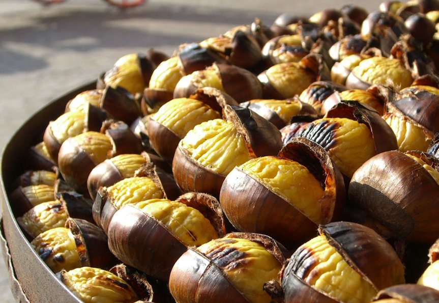 Эта картинка: улица, сковородка, торговец жареными каштанами – характерна для многих городов Европы накануне Рождества. Вряд ли такая традиция привьётся когда-нибудь у нас: не блины и не шашлык… Однако стали появляться каштаны и на российских рынках и в супермаркетах. Обычно они родом с Кавказа и являются плодами деревьев, которые в большом количестве высаживали вместе с виноградом греки, основывая во времена античности колонии в Причерноморье и Крыму.