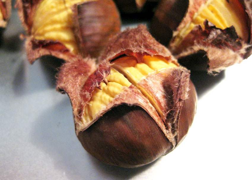 Для этого перед приготовления каштаны надо помыть, наколоть каждый орех вилкой или сделать глубокие крестообразные надрезы.