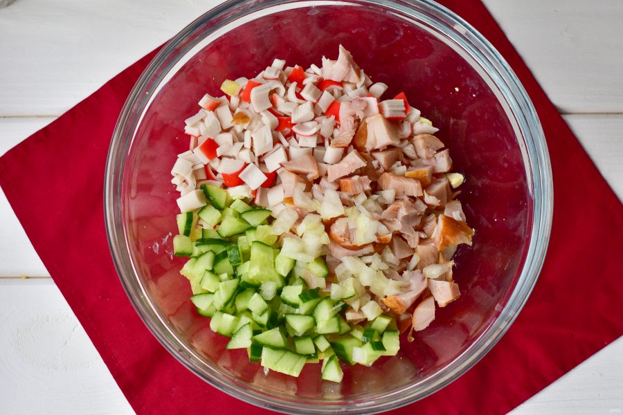 Салат с курицей и крабовыми палочками рецепт с фото пошагово