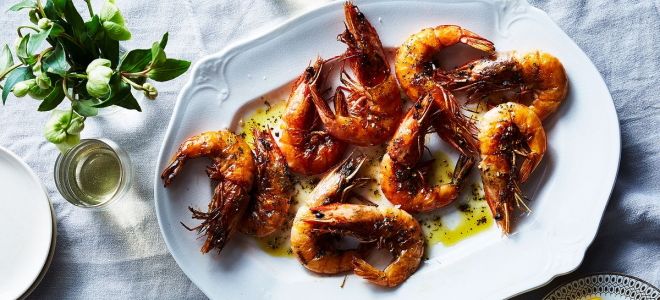 - Креветки – Гигантские креветки, не забудьте оставить хвосты, но очистите от панциря и удалите жилки.