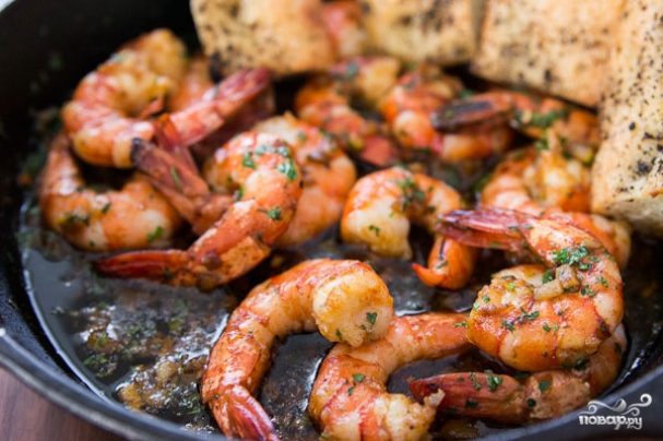 Креветки жареные на сливочном масле с чесноком рецепт с фото