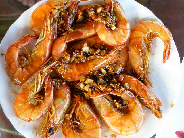 Жареные креветки с чесноком