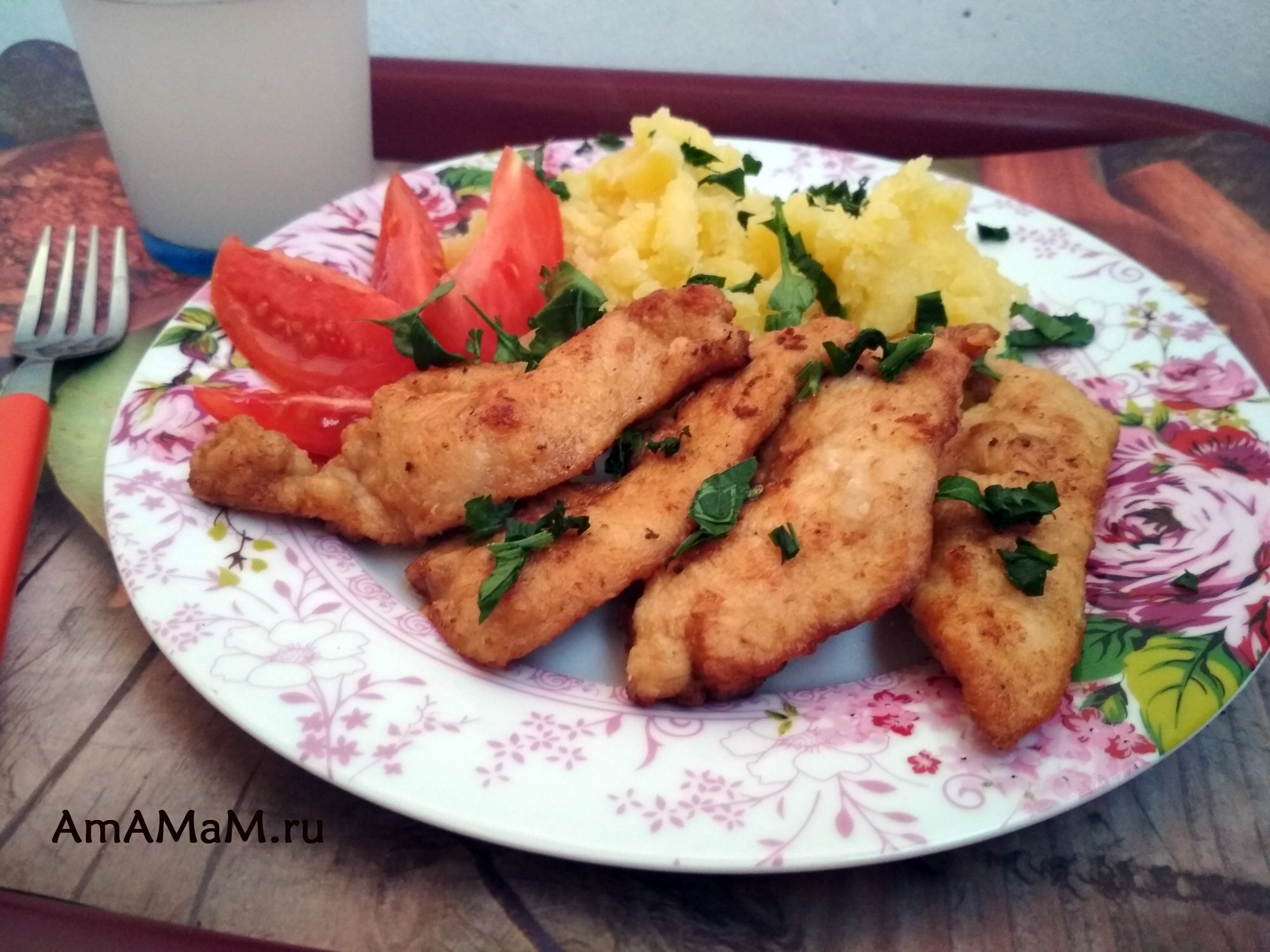 6. Курицу обжарить на растительном масле на хорошо разогретой сковороде (по 3-5 минут с каждой стороны). Накрыть крышкой и дать «отдохнуть» до готовности.