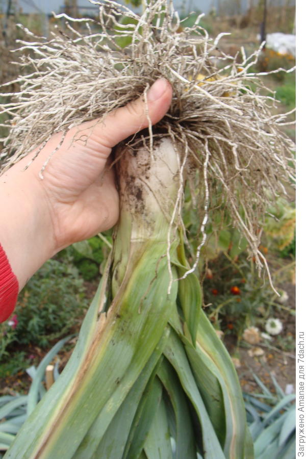 - Копать или тянуть. У лука-порея крупная корневая система, поэтому копать его иногда легче.