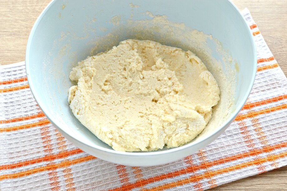 Перемешайте ложкой до образования рыхлого липкого теста.
