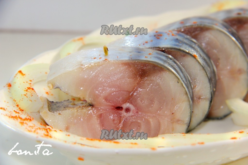 Скумбрия по этому рецепту получается очень вкусная, слабосоленая.