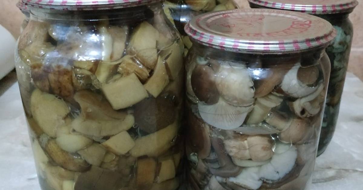После этого готовится маринад из 30 граммов соли, 25 граммов сахара, специй и воды. Все эти компоненты кипятят полчаса, после чего в жидкость добавляют по 70 мл уксуса и масла. Грибы в банках заливают закипевшим маринадом и закрывают крышками.