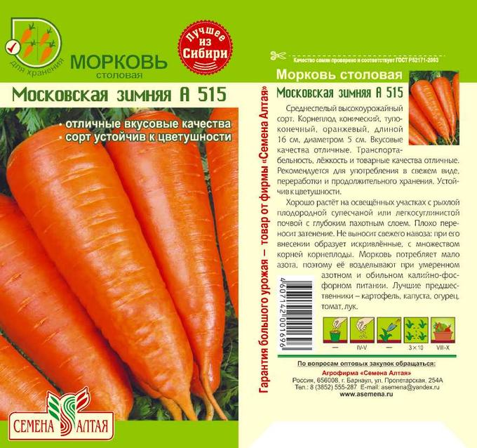 В отличие от других сортов, морковь Московская зимняя А 515 имеет более длительный срок проращивания