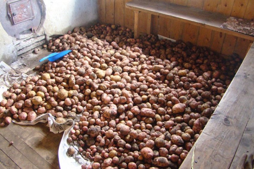 Картофель по сравнению с остальными культурами обладает низким выделением влаги и тепла, что позволяет его раскладывать слоями до восьми метров. Также его не желательно хранить на свету, так как у него может появиться горький привкус.