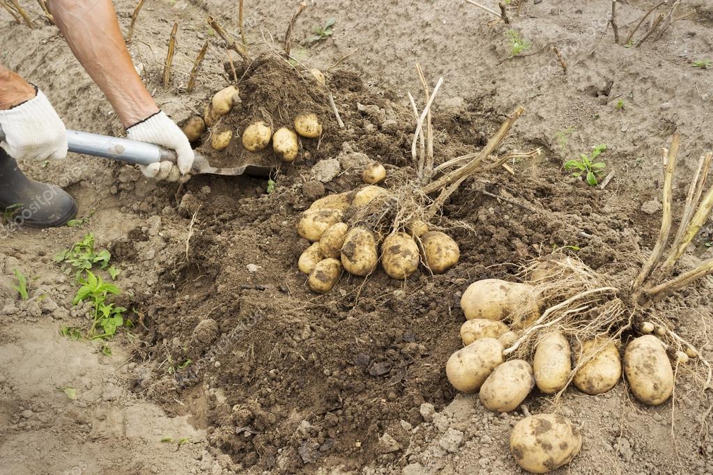 Если вы выращиваете мелкие растения, нет ничего более полезного, чем выкапывать урожай картофеля вручную.Подойдут копающие или широкие вилы.