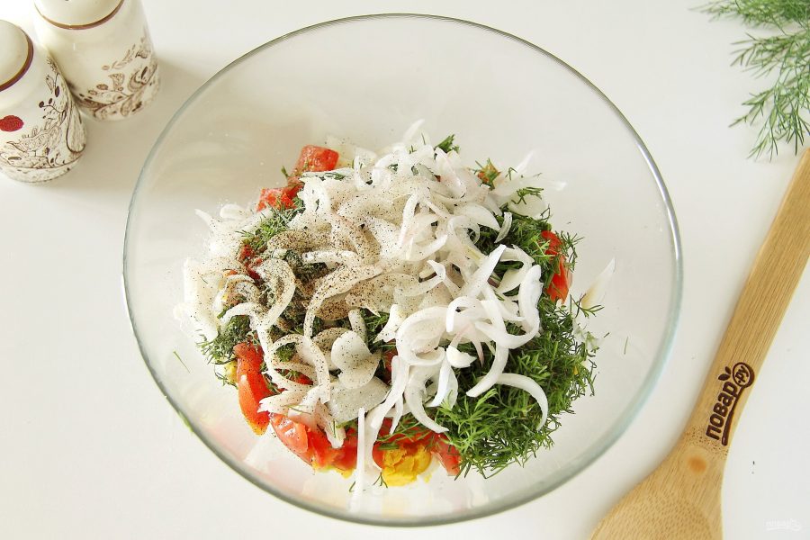 Заправляем майонезом и даём настояться минут 15-20. Наш салат полностью готов к употреблению.