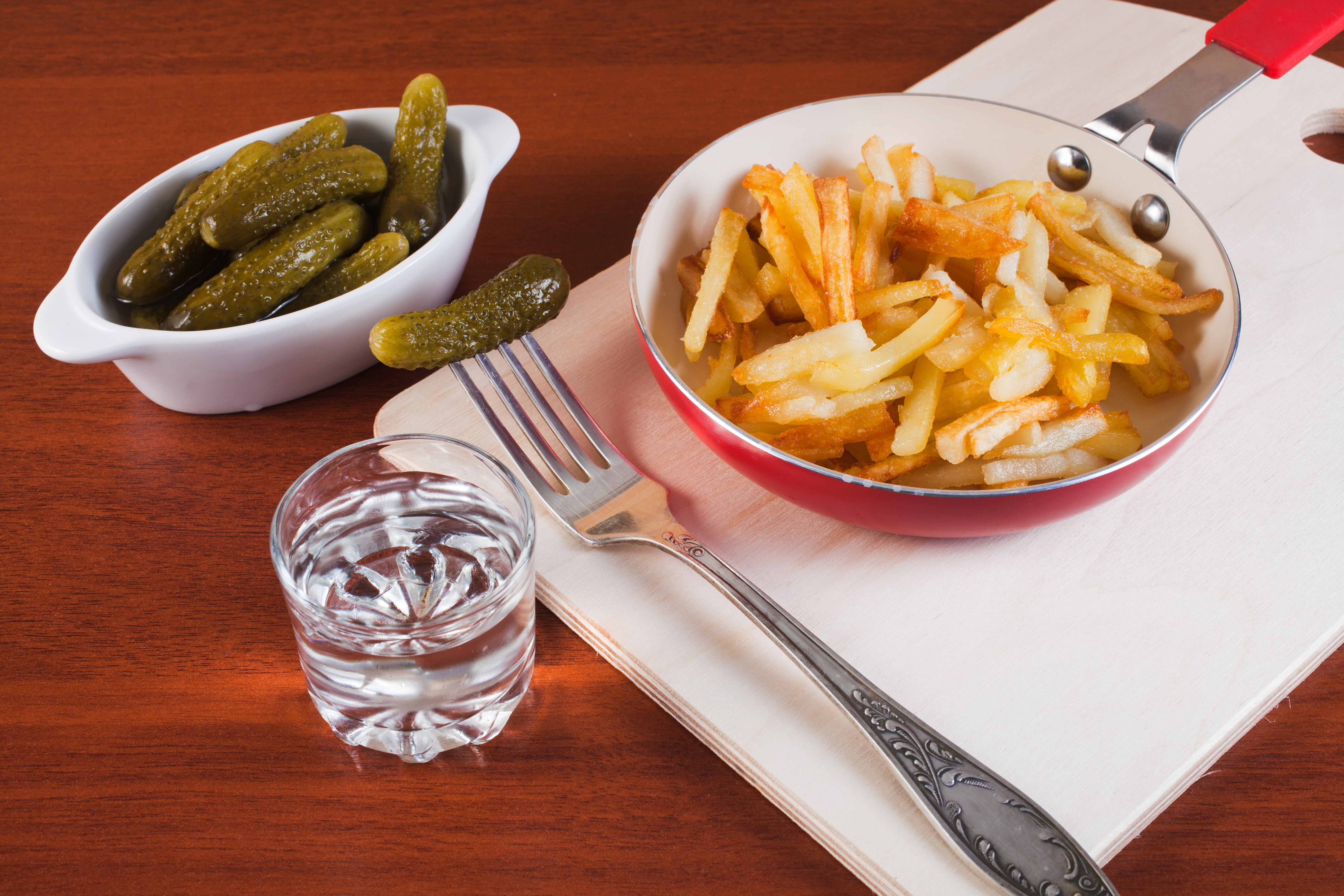 - 4 огурца с укропом, разрезанные пополам или крупнее, разрезанные на четвертинки.Сладкий маринад также является вариантом.